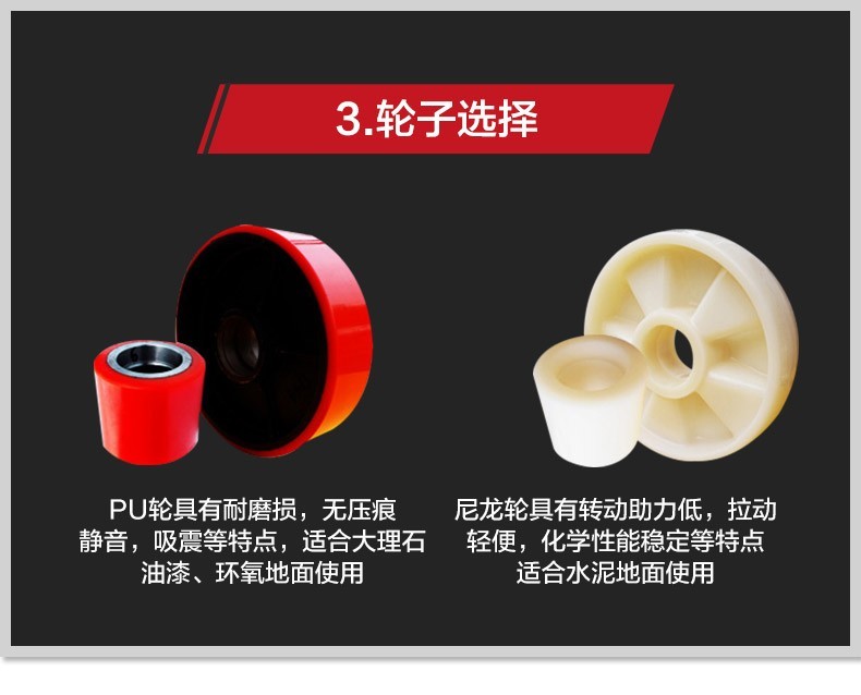 查看詳情手動(dòng)升高叉車(chē)聚氨酯材料行走輪與橡膠行走輪主要差異區(qū)別在于行走輪軟硬不同。聚氨酯材質(zhì)行走輪與橡膠材質(zhì)行走輪適用于不同行業(yè)不同使用需求。